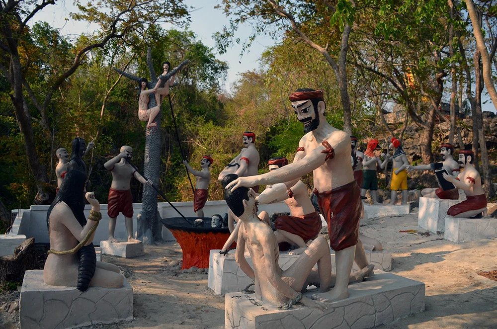 The terrible Khmer Rouge did terrible things to people on the site where Phnom Sampeou is located. After they were done torturing people they would throw them into the caves leaving them for dead. You know, if the fall and previous torture didn't kill them.